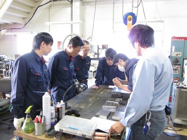 認定を受ける為全員で洗浄後の組み付け型講習風景。